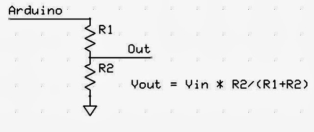 Tín hiệu điện lấy vào sẽ đặt ở chân A1, mạch lấy tín hiệu đo là 1 mạch chia áp theo sơ đồ như sau